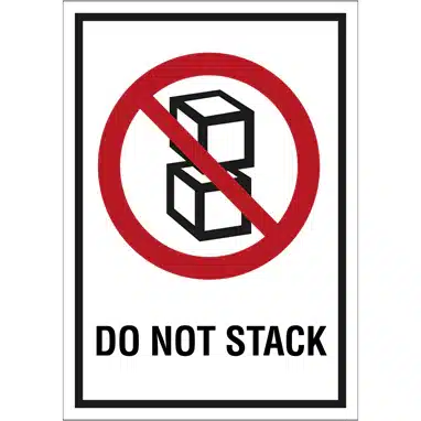 Rulle med 250 stk. selvklæbende Do not stack “må ikke stables” etiketter str. 105×74 mm