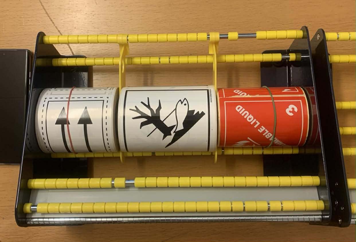 Dispenseren er fremstillet i kraftig stål og udstyret med antiskrid-bund, så den står stabilt på arbejdsbordet – også ved hyppig og gentagen brug. Den intelligente udformning sikrer automatisk adskillelse af faresedlen fra underpapiret, så næste etiket altid er klar til påsætning. Det giver en mere ergonomisk arbejdsstilling og mindsker både tidsforbrug og fysisk belastning.